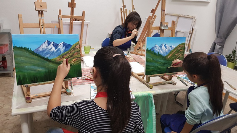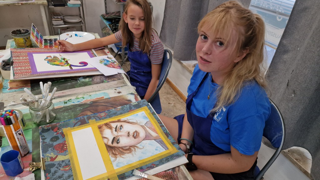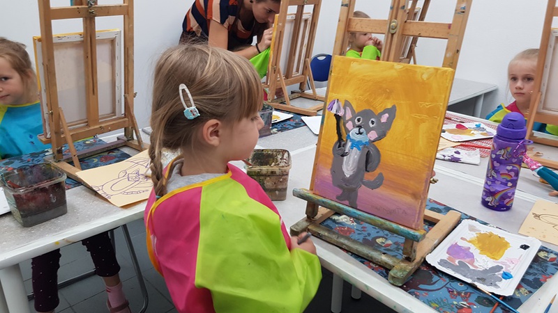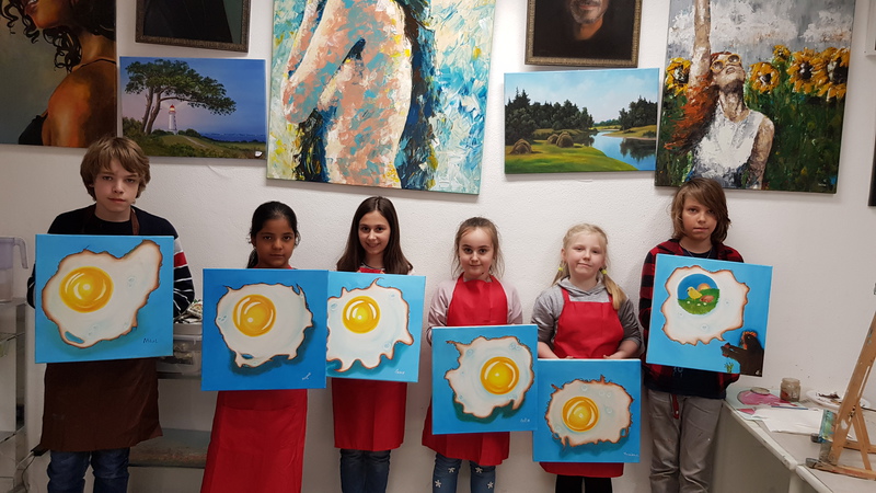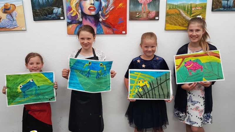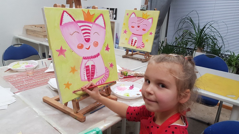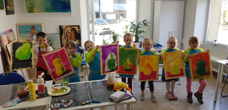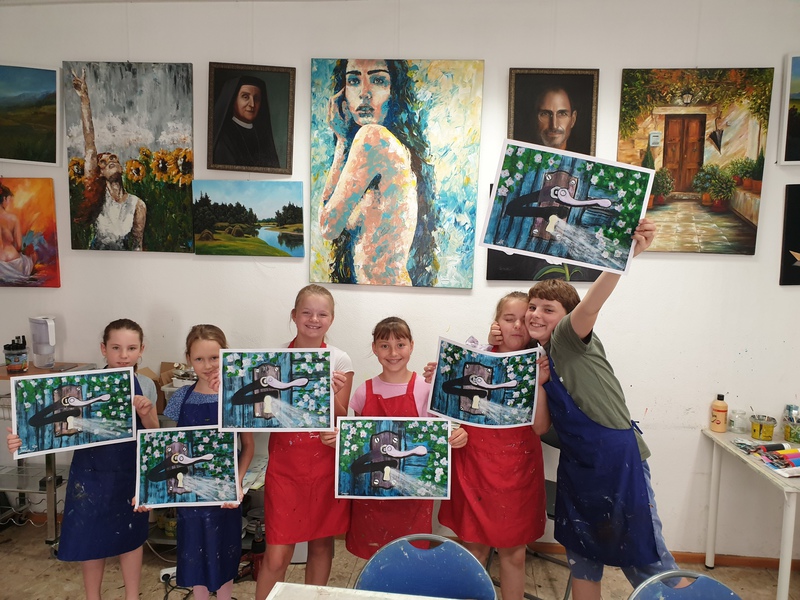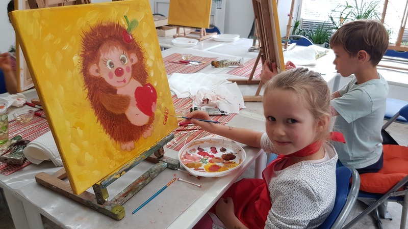 Bei einem Wochenkurs können die Kinder selbst bestimmen was sie malen und dies im eigenen Tempo tun. Ich habe ganz viele Beispiele mit Tieren, Landschaften, Stillleben, Blumen usw. Das Kind kann auch selber etwas vorschlagen und wir arbeiten dann an der Ausführung gemeinsam.