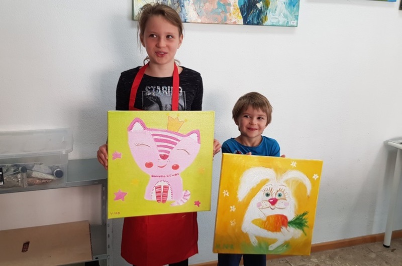 - Der Beitrag inkludiert unsere hochwertigen, kinderfreundlichen Farben und Materialien (F01,F03- inkl. 2 Leinwände 30x40 cm ).
