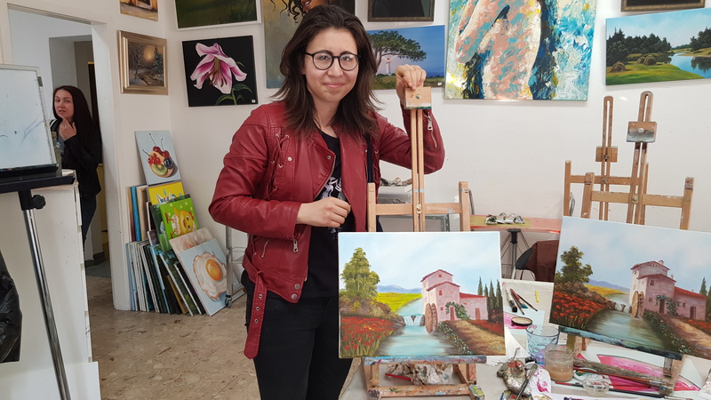 In der Kursgebühr sind alle Malutensilien, wie Leinwand, Pinsel, Farben, Malmittel und Reiniger enthalten.