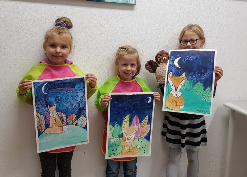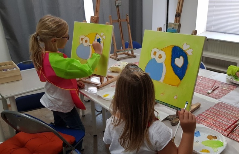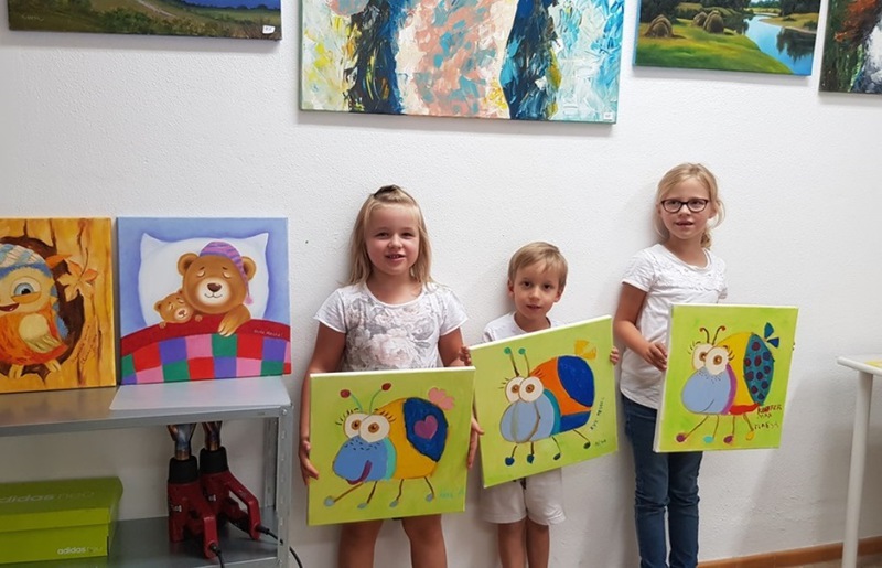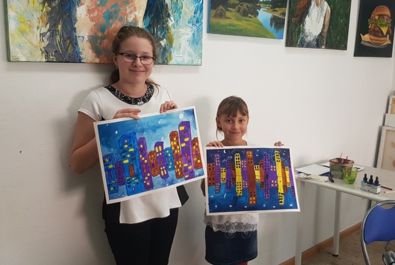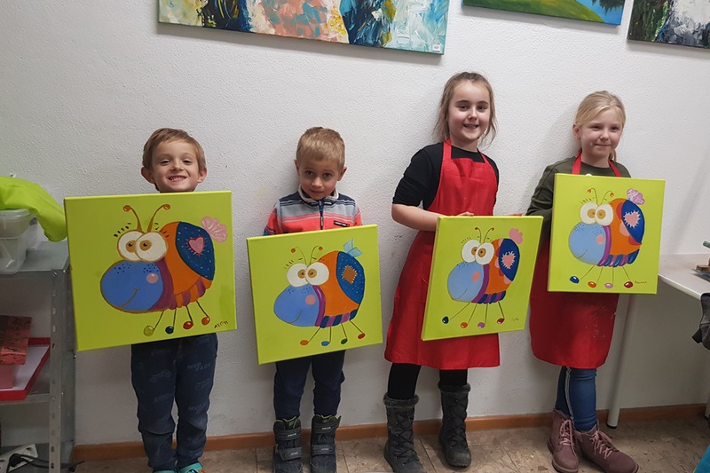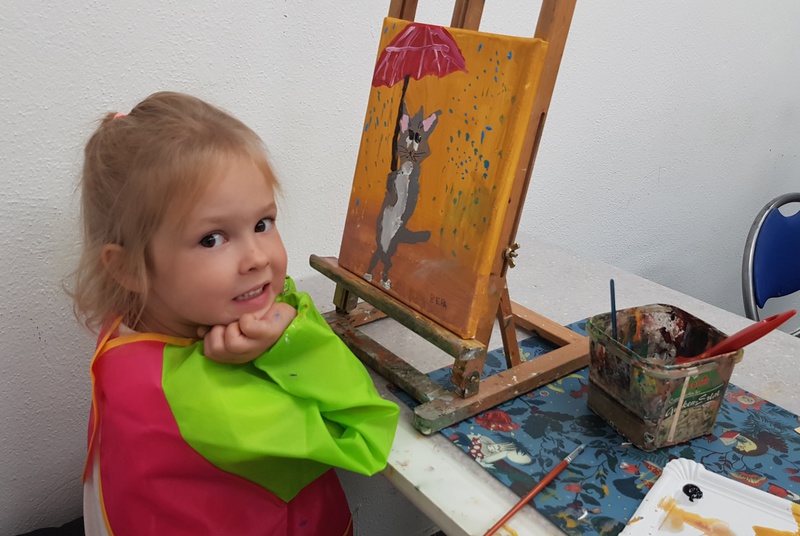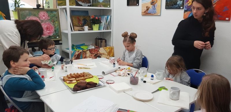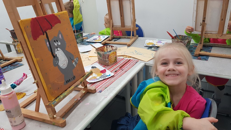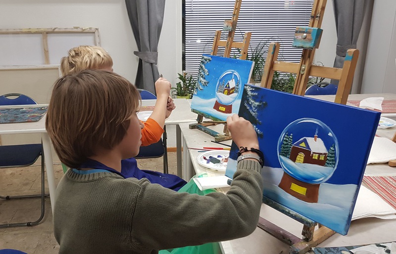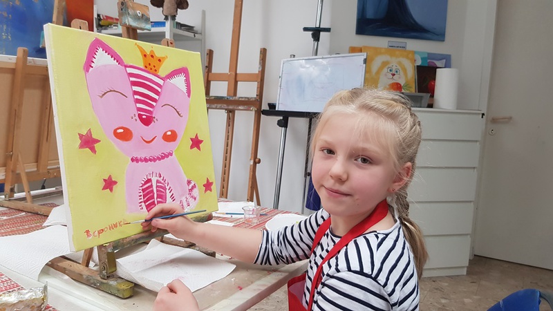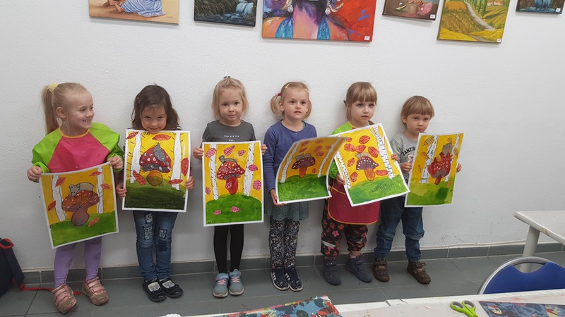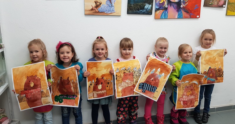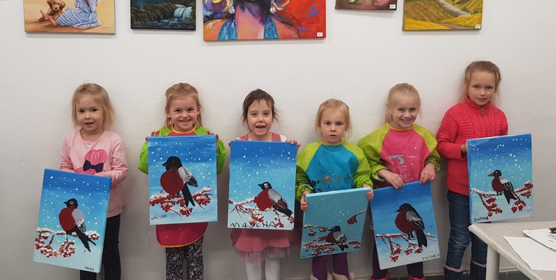 Wir unterrichten auf Russisch und Deutsch. Dies ist eine fabelhafte Möglichkeit für bilinguale Kinder neben der Malerei auch eine Sprache aufzusaugen.