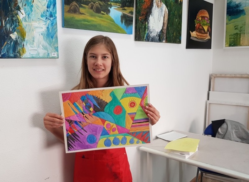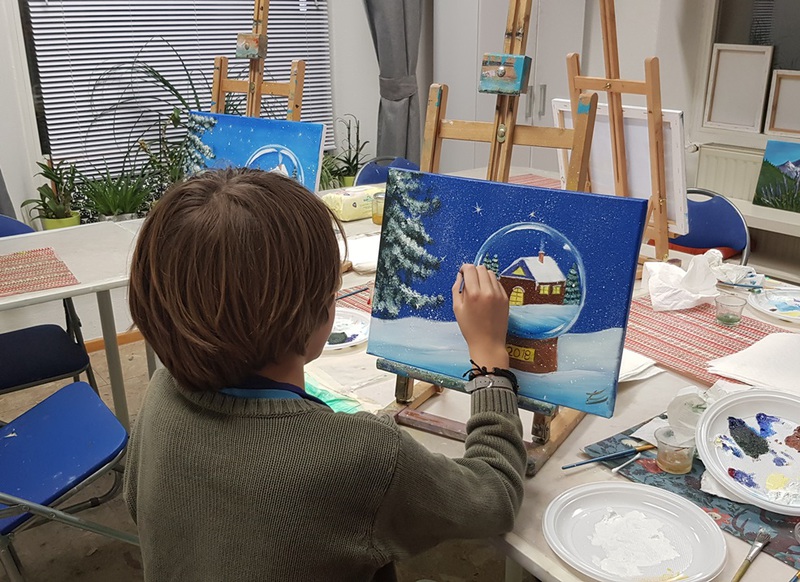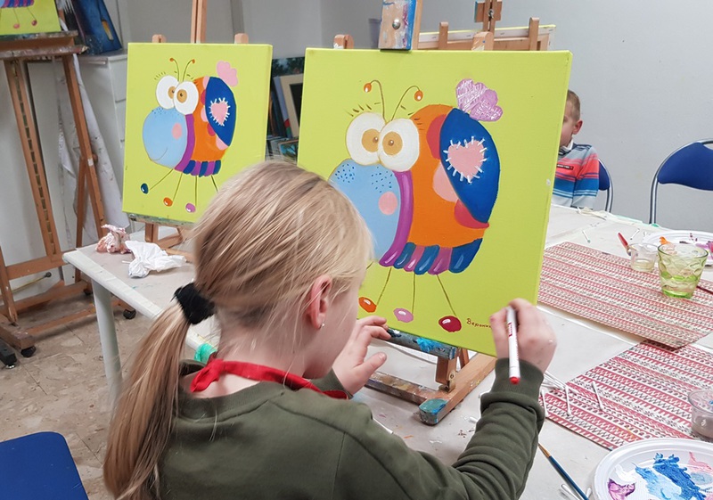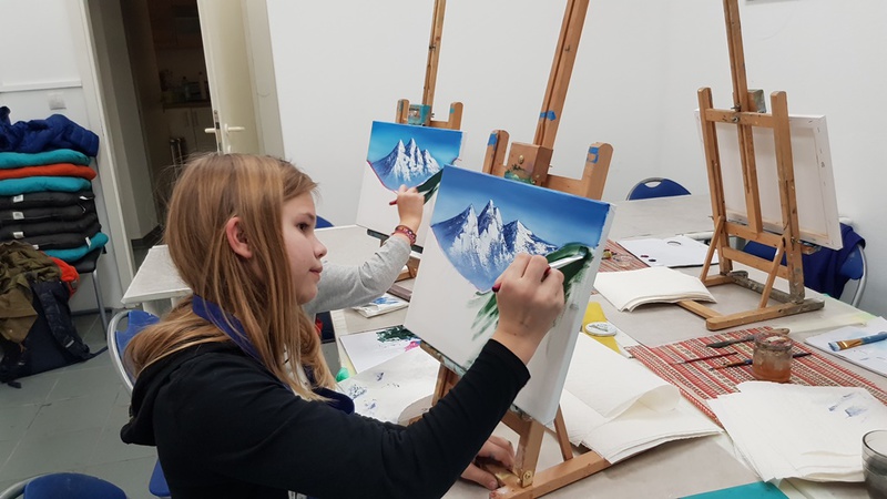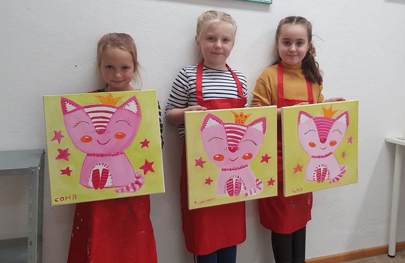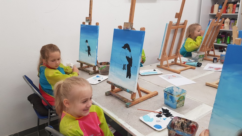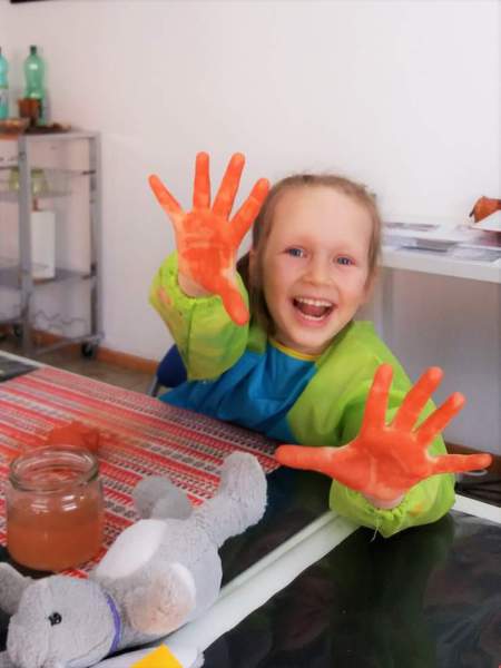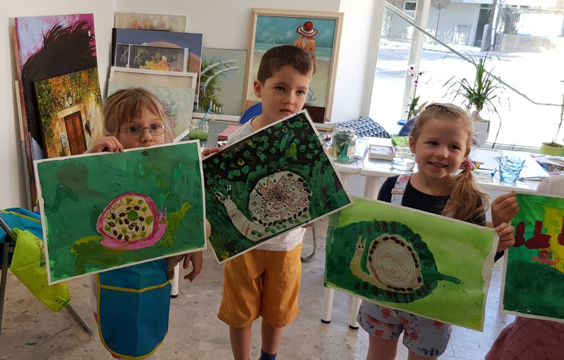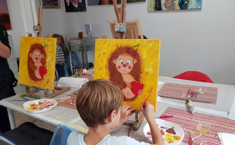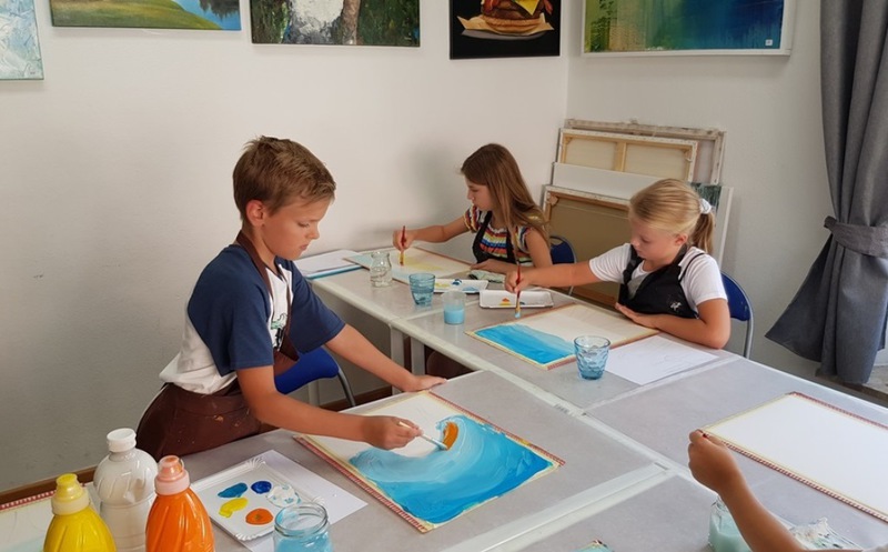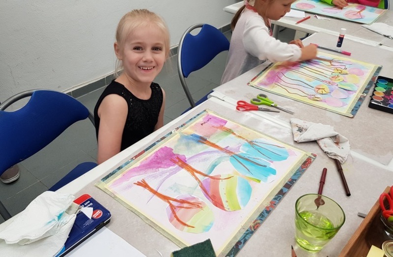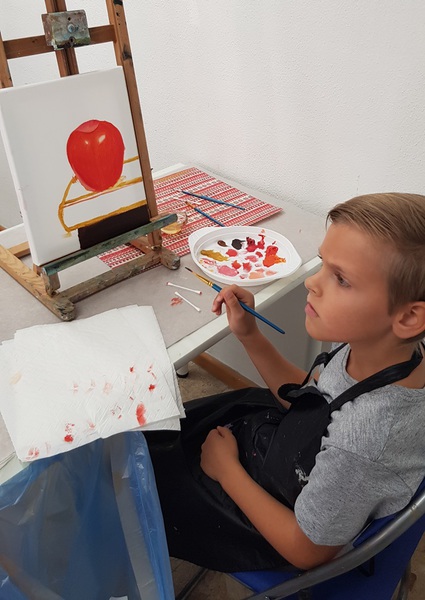 Wir unterrichten auf Russisch und Deutsch. Dies ist eine fabelhafte Möglichkeit für bilinguale Kinder neben der Malerei auch eine Sprache aufzusaugen.