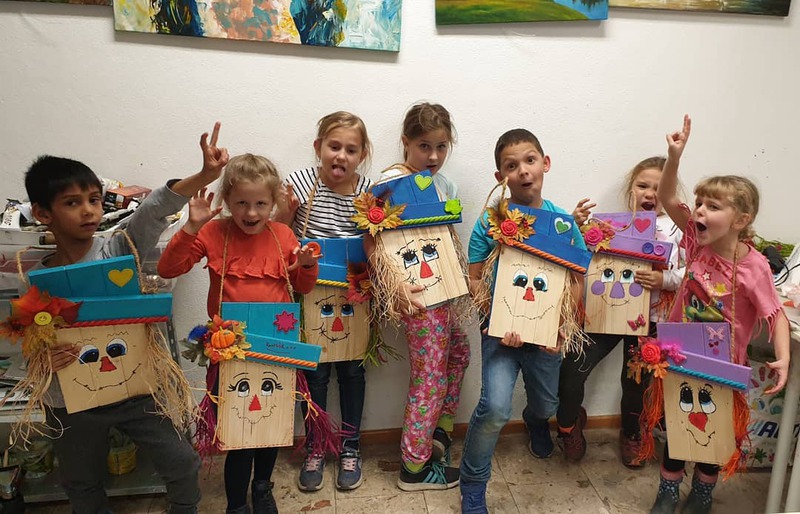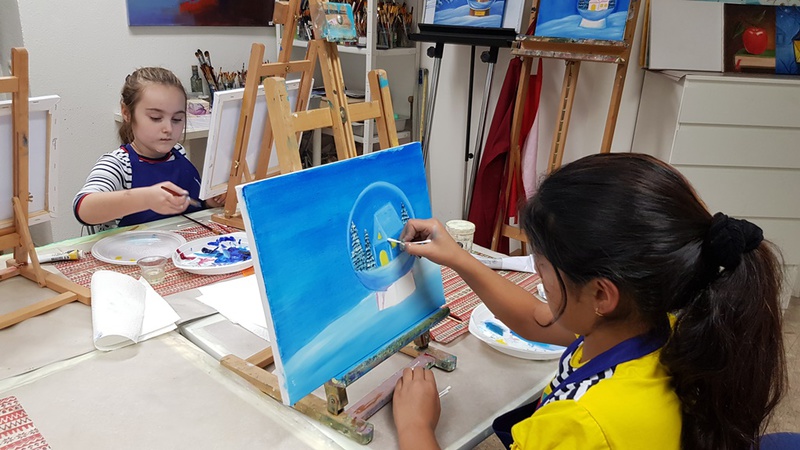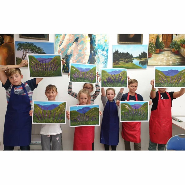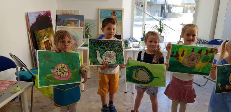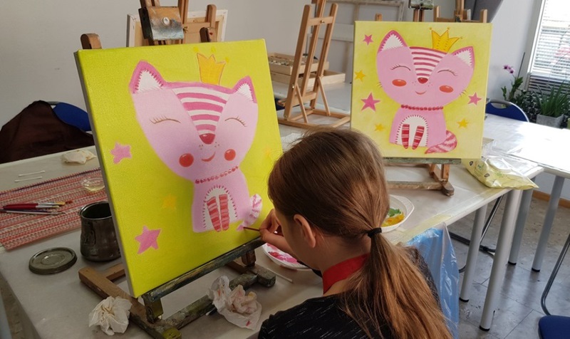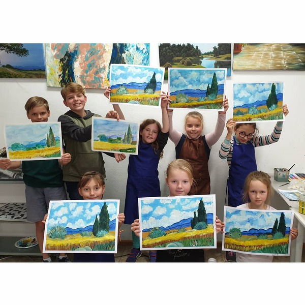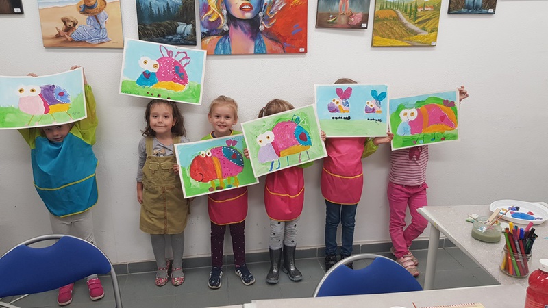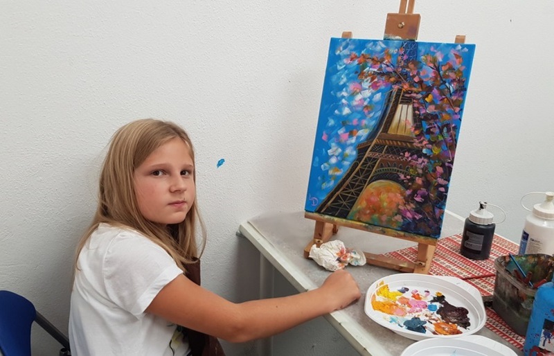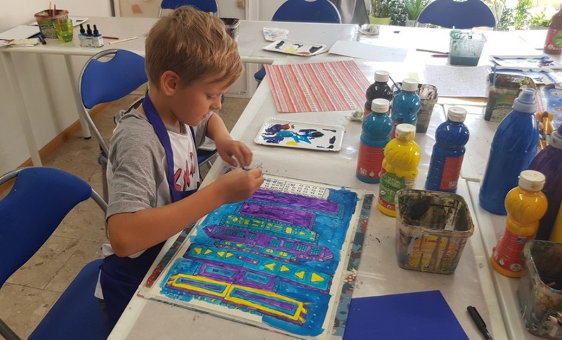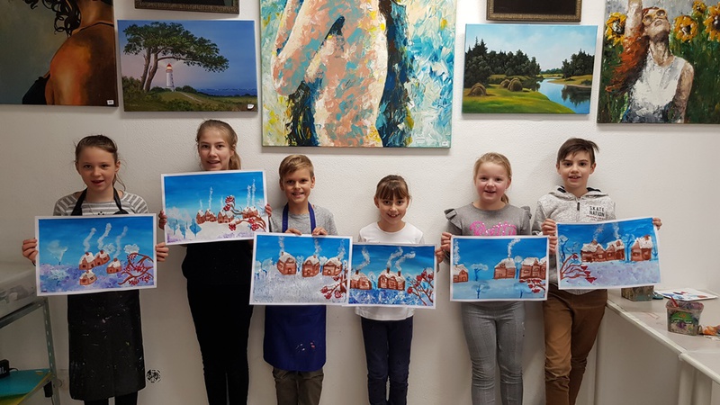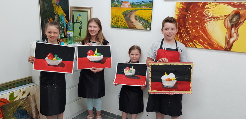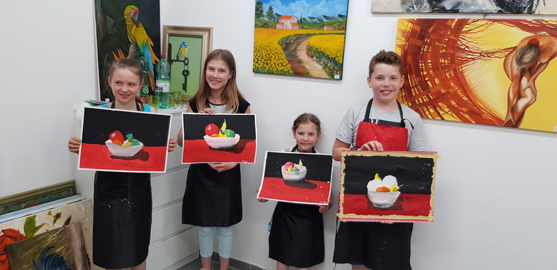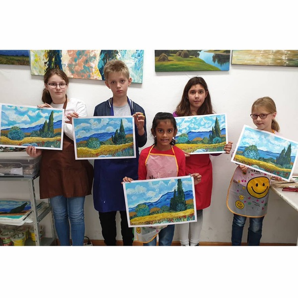 Wir unterrichten auf Russisch und Deutsch. Dies ist eine fabelhafte Möglichkeit für bilinguale Kinder neben der Malerei auch eine Sprache aufzusaugen.